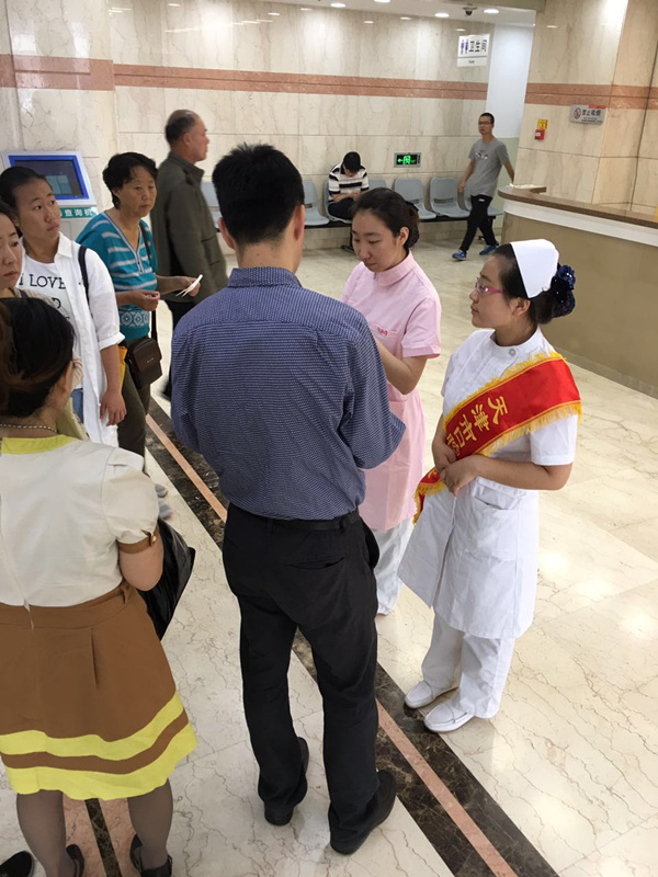 为了深入推进“志愿服务进医院”活动,我院近年来积极开展志愿服务进医院工作。今年,为了进一步推进志愿者活动,且为广大志愿学生在专业上提供良好的学习氛围和平台,为口护生学习专业课程奠定良好的基础,在主管领导戴艳梅书记的帮助和指导下,我院团委和护理教研室一道,继续与天津医学高等专科学校团委、护理系团委组织进行合作,根据2015-2016年志愿者活动方案安排,我们继续招募口腔护理专业一年级学生,利用一年级下学期的周末时间,来我院门诊楼每个楼层的候诊区开展志愿服务。